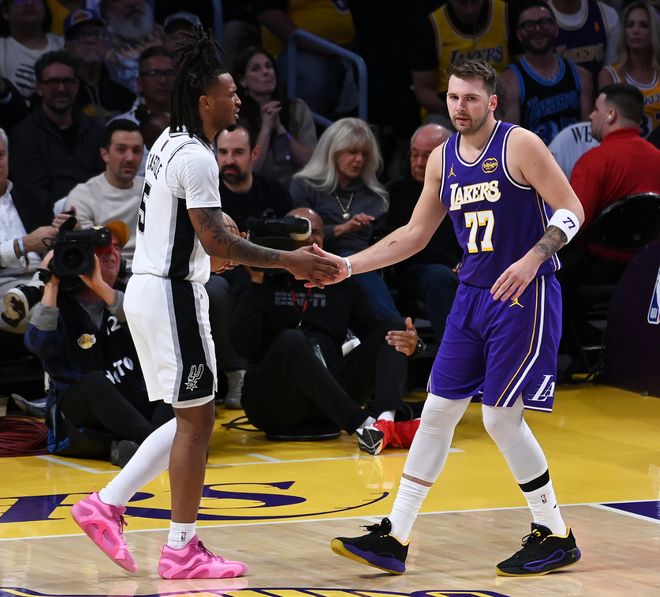 里夫斯、詹姆斯继续伤停,卢卡-东契奇复出带队,上一场湖人平民阵容击败了开拓者,东契奇此役复出带队面对状态不俗的马刺。首节东契奇就展现了超级魔术师的风采,首节拿到13分5篮板3助攻3抢断2盖帽,东契奇积极性太强。